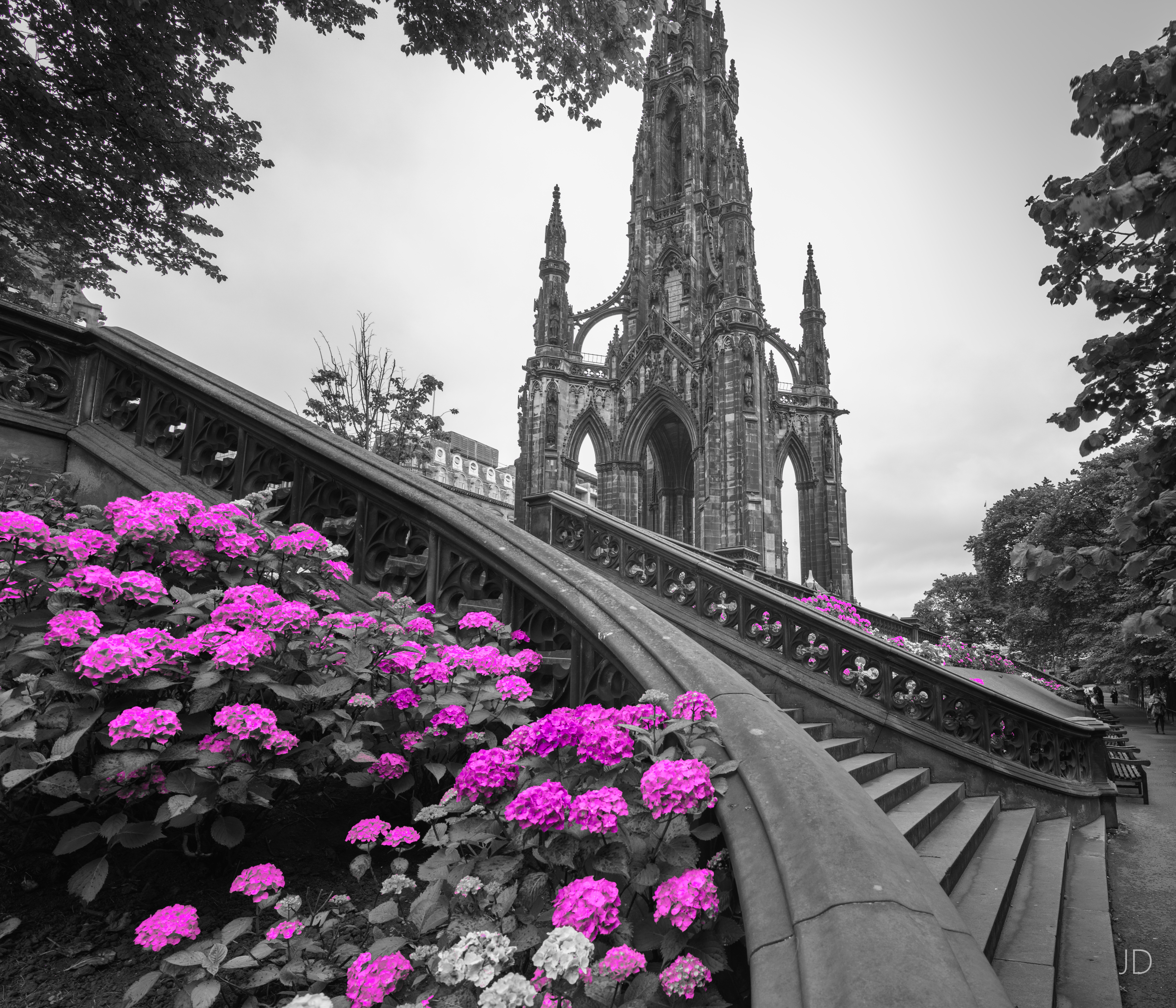 Maar al met al hebben we heel wat plaatsen aangedaan en waardige foto’s geschoten. Bij Holyrood Abbey bijvoorbeeld. Toen we deze prachtige vervallen abdij bezochten wisten we andere toeristen af te schudden en konde zo ongestoord plaatjes schieten.