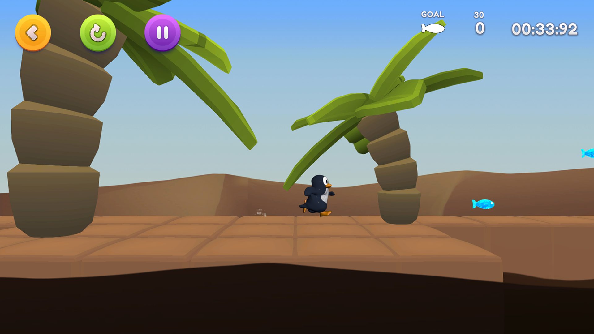 Als mensen mij vragen wat Penguin Panic is, zeg ik meestal “Mario met een pinguïn”. Daar doe ik onze pinguïn natuurlijk een beetje tekort mee (en Mario ook, toegegeven), maar het basisprincipe is hetzelfde: ren het level door terwijl je obstakels vermijdt en vissen verzamelt. Dit moet je zo snel mogelijk te doen.